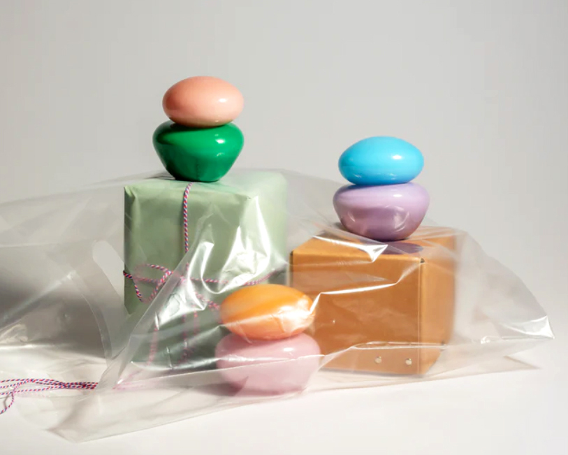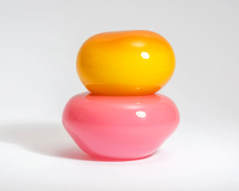 Pour sa part, le travail de Helle Mardahl représente en quelque sorte la traduction même de la gourmandise en objets. La designer danoise imagine des courbes organiques et des teintes édulcorées inspirées des candy shops de son enfance, sa marque de fabrique. Les bonbonnières constituent ses objets signatures, des produits beaux qui stimulent à la fois les yeux et les papilles des spectateurs. Les bonbons se déclinent en verres, tasses, carafes, plats, et même luminaires, et sont réalisés dans la verrerie historique Holmegaard, valorisant un savoir-faire ancestral.