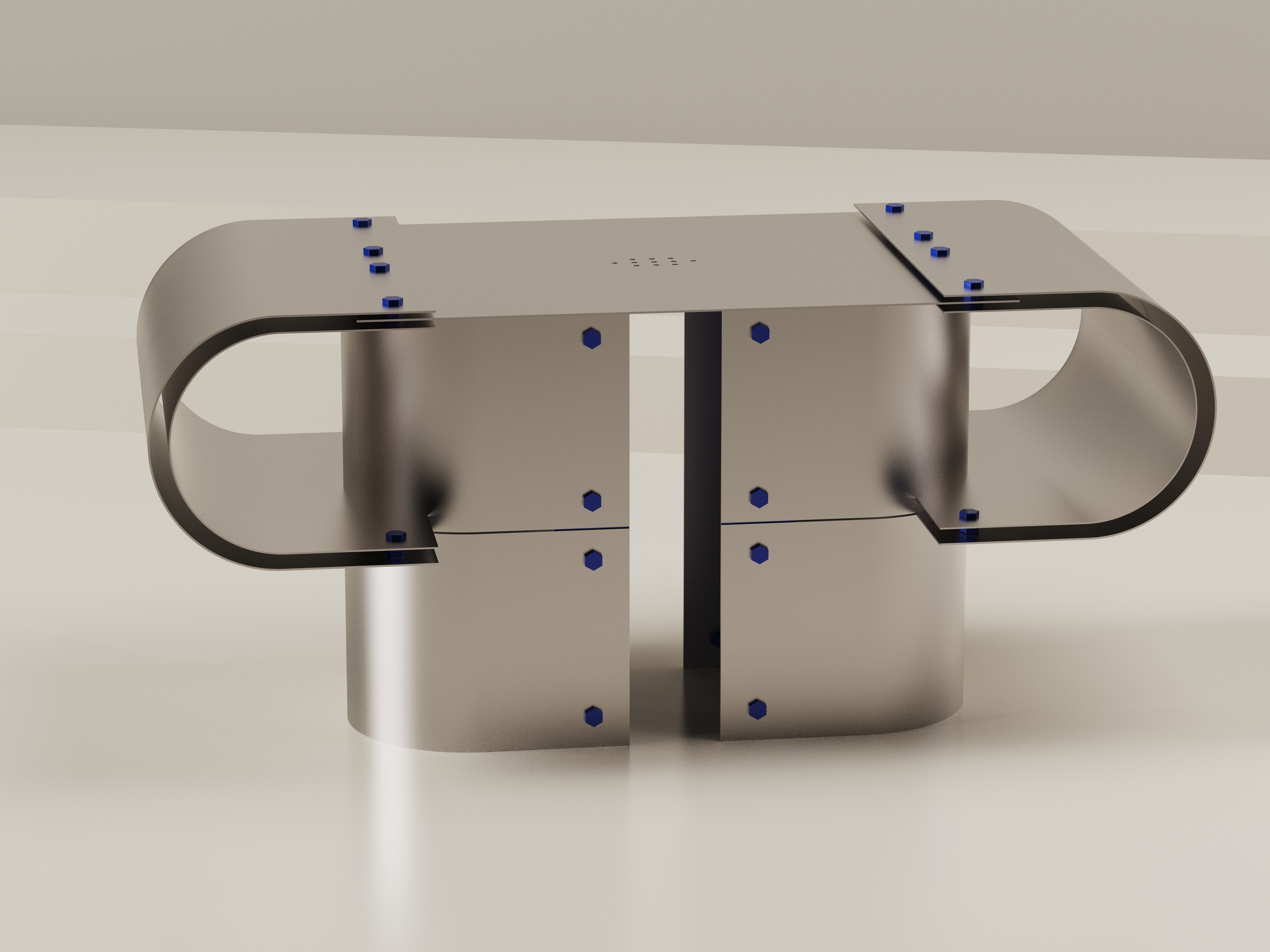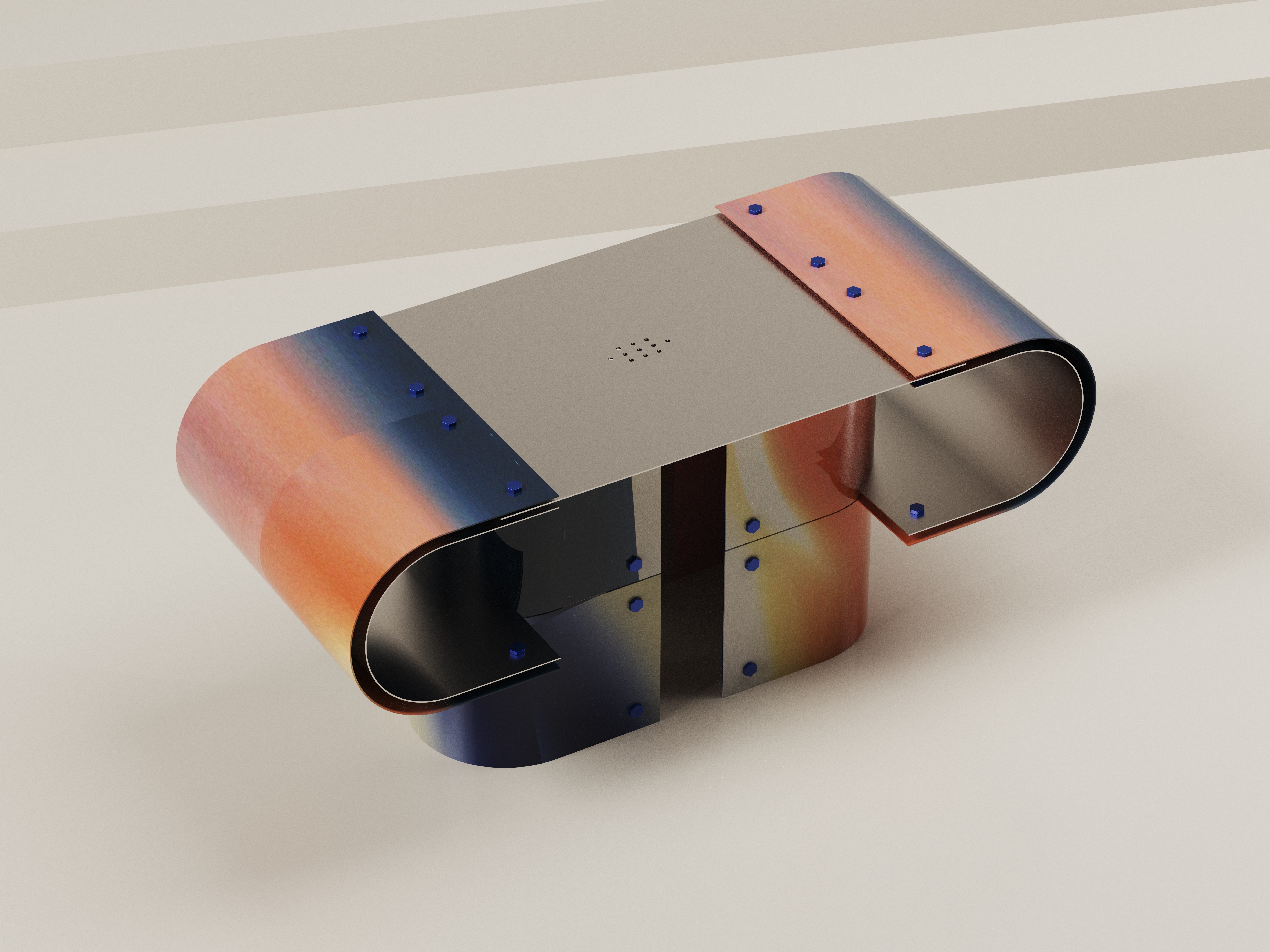 Table basse PODS en tôles d’acier thermolaquées et quincaillerie thermolaquée