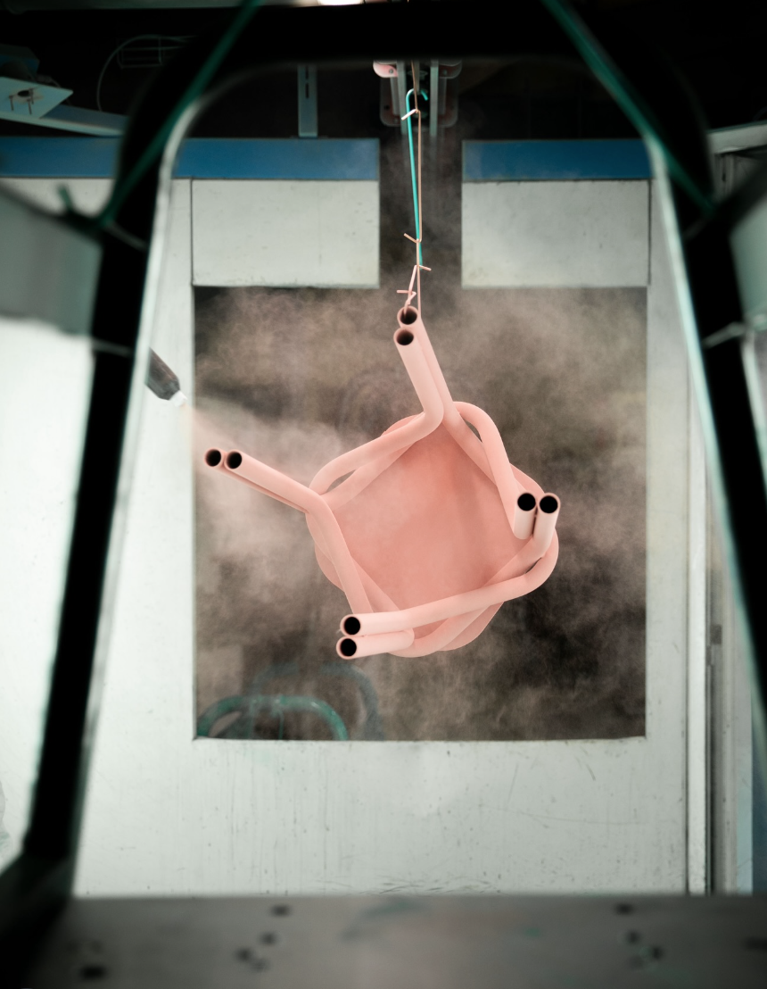 Ce que je retiens de ces enjeux, en tant que designer, tient en deux questions : peut-on à la fois couvrir, protéger et révéler? Peut-on mettre en avant un traitement de surface sans traiter toute la surface des matériaux travestis ? Révéler pourrait mettre en avant le principe de cacher par le revêtement. Ce sont les défis que je chercherai à relever dans mon projet de diplôme PODS. Il a l’ambition de déconstruire l’esthétique homogène et industrielle du thermolaquage en le pensant comme un vecteur de dessin pour du mobilier intérieur. De la France au Vietnam, j’ai travaillé la laque chimique sous divers aspects. Le thermolaquage s’inscrit dans la continuité de mes savoirs faire. Il me permet d'explorer un nouveau procédé et de m’initier au travail du métal, matériau industriel qui devient mon prochain terrain de jeu.