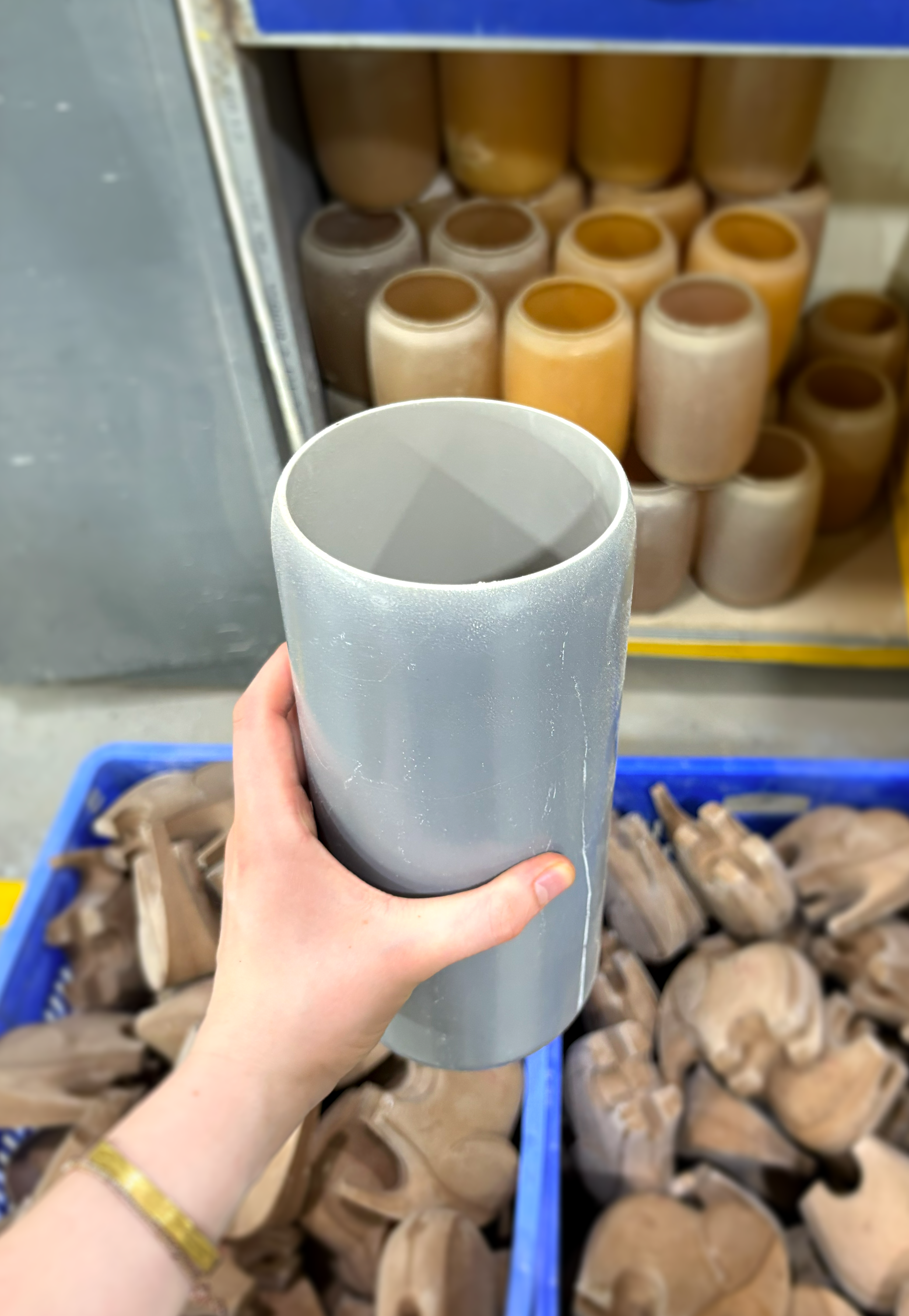 Il y a du brillant partout. Des dégradés de couleur et des cascades de pigments luisants. Comme si j’avais perdu le contrôle de mes mains, elles s’échappent et veulent tout effleurer. Je soulève les vases un à un afin de deviner la matérialité qu’ils dissimulent. Mais lorsque mes deux mains font décoller un vase tubulaire, j’ai l’impression que sa légèreté est un mensonge et je le soulève à nouveau. Je me surprends deux fois, en constatant que ce vase laqué défie bel et bien les lois de la gravité. Pourquoi m’attendais-je à un objet si lourd? Sans dire un mot, les artisans laqueurs devinent ma surprise et se sourient mutuellement. Suis-je victime d’une farce? Le directeur du workshop vietnamien m’indique à le suivre. Nous sommes à présent dans la partie d’usinage des supports que cachent les laques. Je manque de trébucher sur un tuyau de PVC. En le ramassant pour le remettre à sa place, je discerne une sensation familière. Ou plutôt un poids et une forme qui font écho à mes sens. Mes yeux s’illuminent et je me tourne éberluée vers le directeur. Il me tend à nouveau le vase et je constate que ce bout de PVC reprend exactement sa forme. Il a compris que j’ai compris et met un doigt devant sa bouche comme pour sceller un secret. C’est à ce moment que j'ai compris la subtilité de la laque. Hermétique et homogène, elle scelle sous sa coque rigide des matériaux travestis. La laque réussit à faire mentir les objets. Ainsi, la mutation des techniques a permis à un vulgaire tube de PVC de s’élever au rang de vase luxueux, objet d'art de vivre d’exception. Pensé pour être laqué, le galbe du tube est légèrement travaillé pour briller à merveille et merveilleusement nous tromper.
